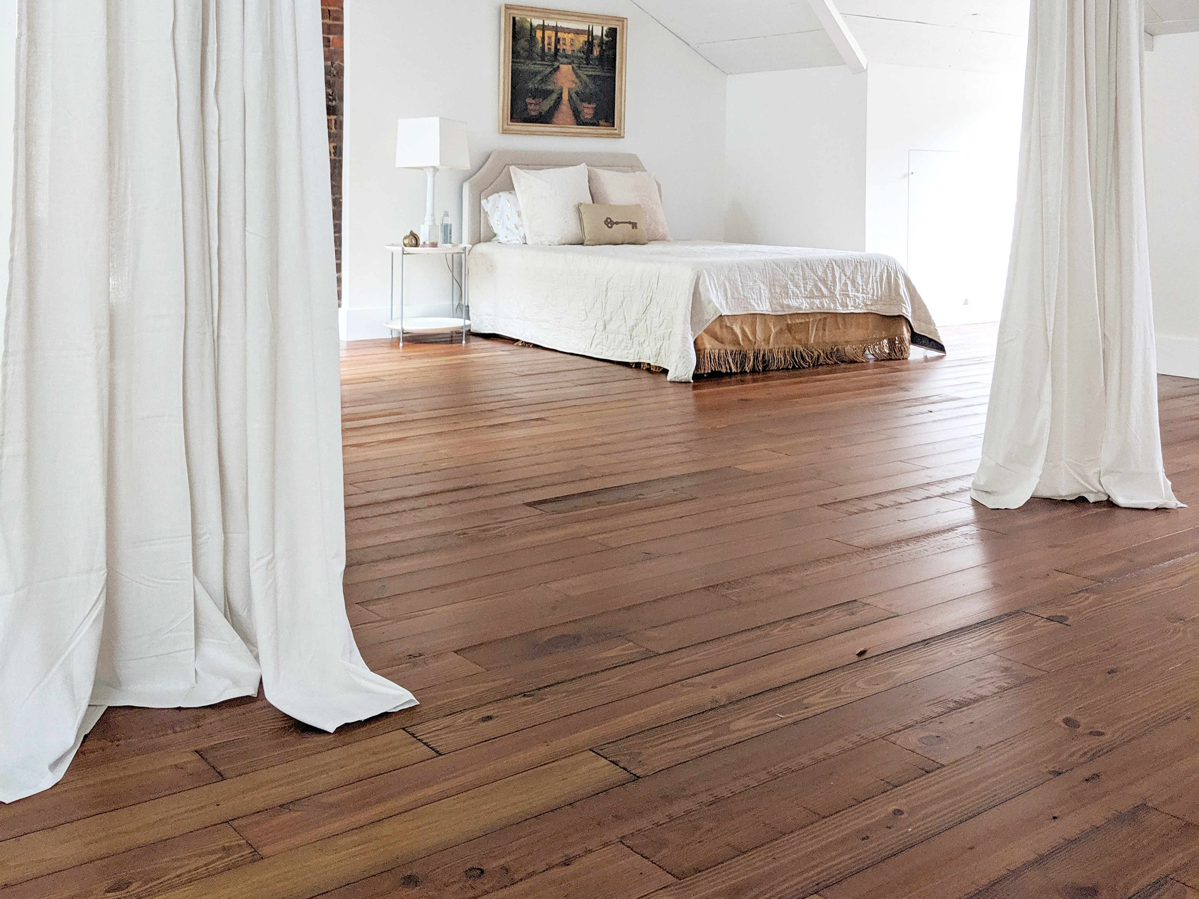 Preserving history and restoring beauty with the fiery reds and radiant golds of American heart pine. Walk on historic wood used to build the literal backbone of this nation.
